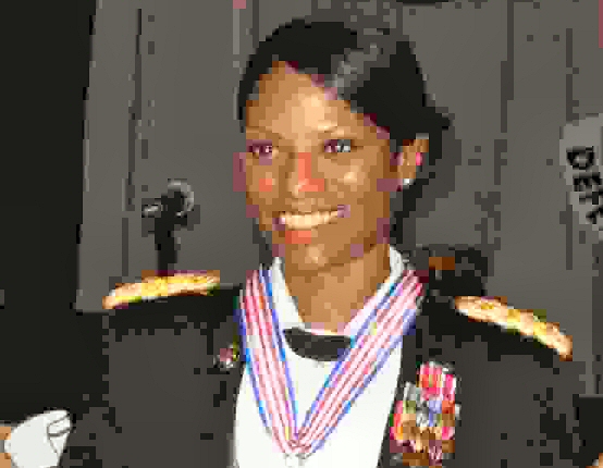 On September 26, 2009, newly appointed Warrant Officer 1 Mickey Dickerson (center) receives a decorative saber from CW5 Paul Parker (left), president of the Rising Eagle Chapter of the Warrant Officer Association in Alabama, and Chief Warrant Officer 5 Tommy Gilbert (right), Command Chief Warrant Officer for Alabama, during a graduation ceremony held in Anniston, AL. Dickerson was awarded the saber for receiving the Distinguished Honor Graduate Award at the Alabama Army National Guard's Warrant Officer Candidate School, Fort McClellan, AL.  Dickerson is the first female candidate to receive a top leadership award at the school.  She received both the Distinguished Honor Graduate Award and the Leadership Award.  The Leadership Award recipient is chosen by vote from the entire class, a true honor to receive such an award from one's peers.