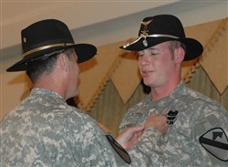 In June, Warrant Officer 1 Jonathan Holsey, the first Army amputee to attend warrant officer school, has his new rank pinned by his sons at his graduation ceremony. Holsey, an Army human resources technician, made Army history as the first Army amputee to attend Warrant Officer School and to pin on warrant officer bars. He was injured in Iraq in 2004 by an improvised explosive device, and had his left leg amputated below the knee - see more.