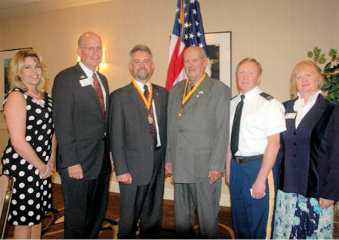 Pictured from left, MOAA Executive Administrative Assistant Michele Au Buchon; MOAA President VAdm Norb R. Ryan Jr.; inductee CW5 Albert S. Eggerton; inductee CW5 David P. Welsh; USAWOCC Deputy Commandant CW5 Mike Funk; and Cerie R. Kimball, Mt. Vernon Chapter member.